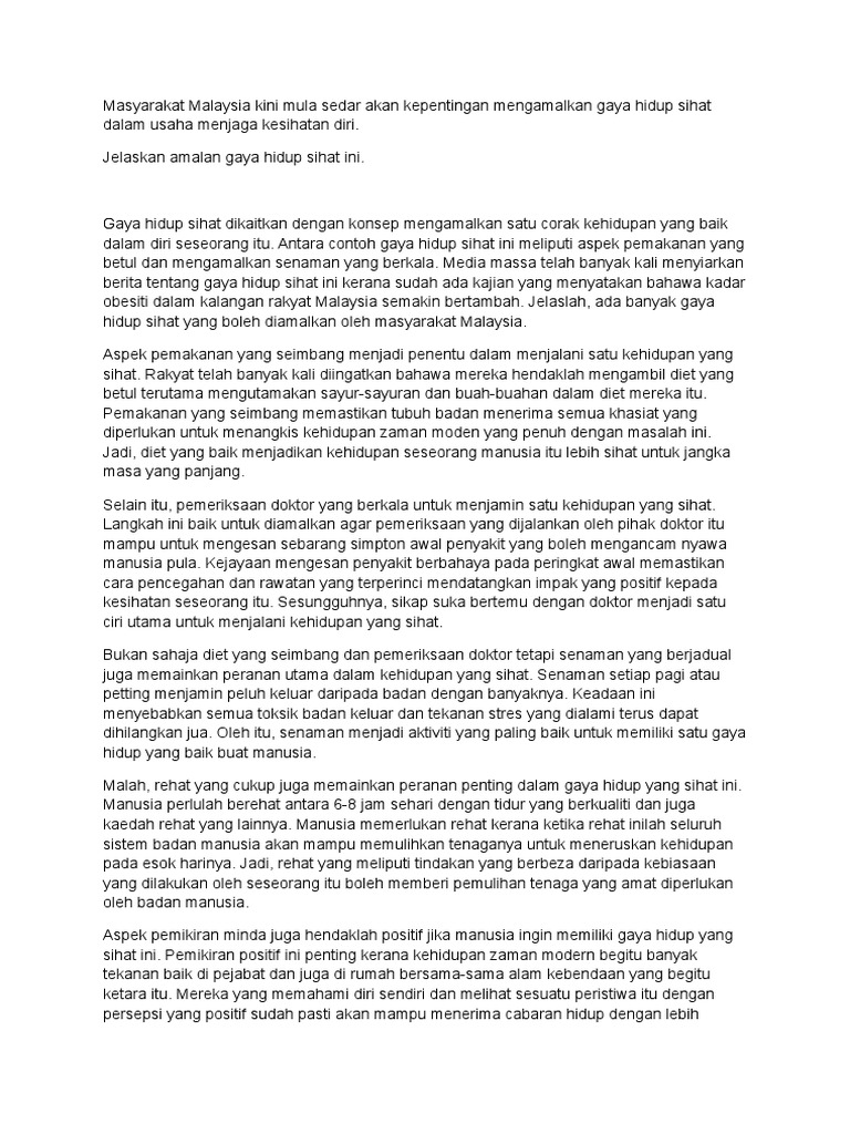 Contoh Karangan Amalan Gaya Hidup Sihat Pdf